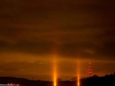 英国小镇夜空中出现两道由冰晶形成的橙色