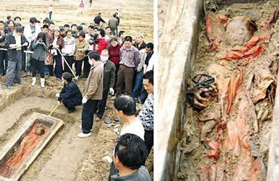 昨日,荆州古城西门外发掘出一具保存十分完好的古尸,长约1....