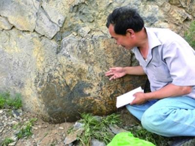 吴甲才在克什克腾旗砧子山岩画区临摹岩画 翻阅《红山岩画》这本书,展现在人们面...