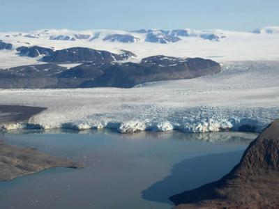 南极冰川近年加剧融化。冰层融化而成的水,导致全球海洋水位上...