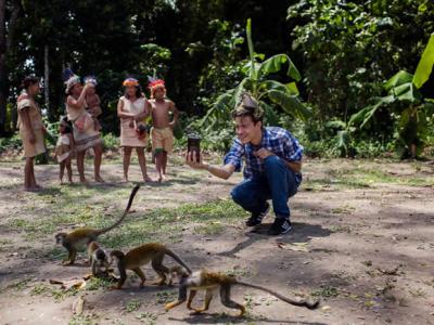 一名年轻男子在哥伦比亚亚马逊地区的猴岛上自拍。 「游猎自拍...
