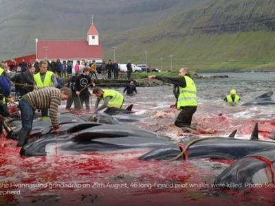 北欧法罗群岛大规模猎杀鲸豚,血染大海屠场(神秘的...