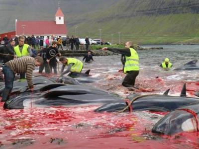 北欧法罗群岛大规模猎杀鲸豚 血染大海屠场