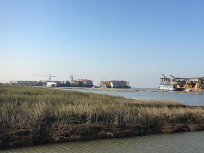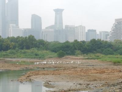 集中停靠在南套水域的挖砂船。破碎支离的雁子洲。枯...