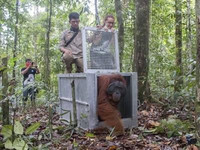 印尼婆罗洲3只获救猩猩康复重返雨林