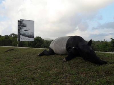 今年2月被路杀的马来貘和蓝天绿地形成强烈对比。(...