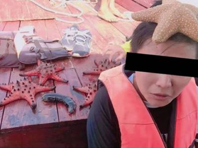 泰国喀比府女子游船上将海星放在头上自拍并上传脸书...