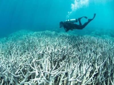 大规模珊瑚白化日趋严重。大堡礁大量模珊瑚白化。(...