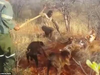 非洲纳米比亚猎人残杀美洲豹影片曝光,猎狗围攻噬咬...