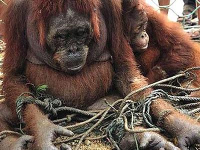 印尼婆罗洲红毛猩猩闯棕榈园被射杀后肢解