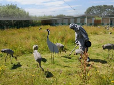 英国保育人员穿上鹤服 吸引鹤返回湿地