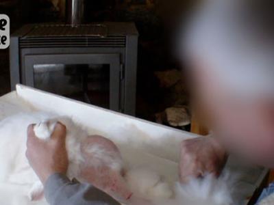 法国农民没有将安哥拉兔麻醉,直接活剥兔毛。 有些残忍的农民,甚至直接敲晕兔...