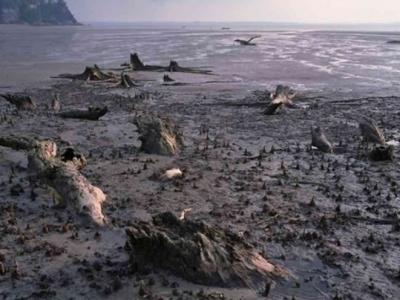 澳洲北部大片红树林因旱季过长枯萎。 贝壳类动物失去红树林保护无法生存。 (...