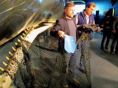 抹香鲸尸体肚中取出13米鱼网和引擎盖 垃