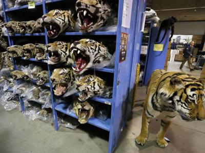 在科罗拉多州丹佛的一座仓库——国家鹰类暨野生动物财产处置场,存放了非法野生动...