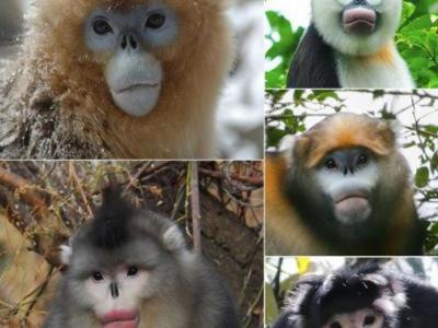 左上:川金丝猴(作者摄);右上:黔金丝猴(Dr.Xiangzhuofu摄);中:越南金丝猴(...