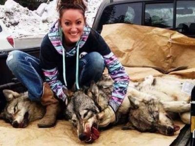 纳塔莉与豺狼尸体合照 帕尔默猎杀塞西尔一事,惹起公愤。 塞西尔在国家公园...