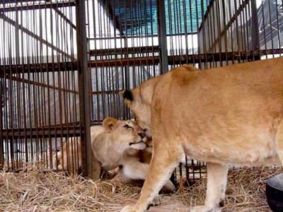 国际动物保护组织早前在秘鲁一个马戏团救出多只狮子,包括图中的母狮及幼狮。 ...