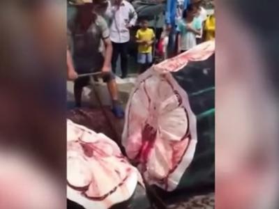 鲸鲨被渔民残忍活宰 鱼嘴仍大口喘气
