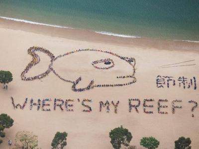 香港900名儿童排成超大珊瑚鱼 纪念即将到来的儿童海洋日 2013年的主题是「大鲨...