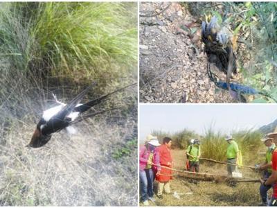 深圳梧桐山附近的大型捕鸟网上有雀尸挂在其上,有些更已被风干,幸当局已组织人手...