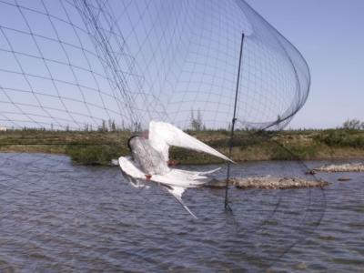 欧歌鸫(左)和莺(右)是主要猎杀目标。 不法商人以雾网(图)及粘满胶水的树...