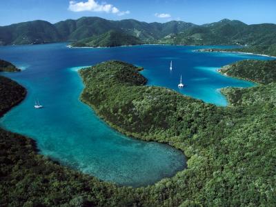 在圣约翰岛飓风穴、沿岸长满红树林的海湾是33个珊瑚物种的避风港。 Photograph b...