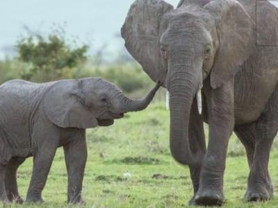 肯尼亚马赛马拉国家保护区大象妈妈陪它散
