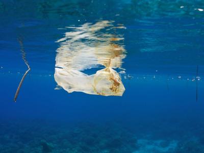 一个塑胶袋在菲律宾外海漂流。海洋塑胶无处不在。在深海中和北极的冰层下都能见到...