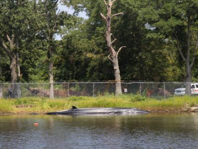 2014年8月21日早晨,一只年轻的母塞鲸被发现死在乞沙比克湾的支流依莉莎白河旁边...