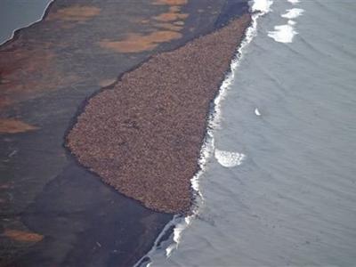 全球暖化迫使3.5万只海象走上岸