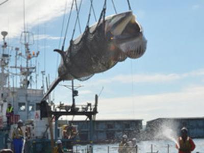 日本科研捕鲸在北海道启动 当天捕获7头小