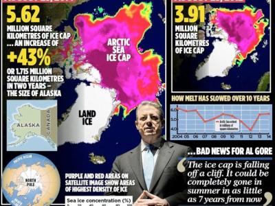 两张卫星图揭示戈尔(中)的预言完全不准确 (神秘的地球报道)前美国副总统戈尔曾...