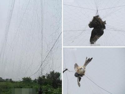 南京江心洲农田发现一个巨型捕鸟网