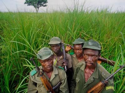 反盗猎巡逻队保卫着刚果加兰巴国家公园里的野生动物。摄影:FRANS LANTING, NATI...