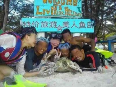 马来西亚沙巴导游硬抓海龟上岸供游客合影