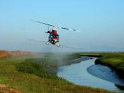 在加利福尼亚州的旧金山湾,直升机在入侵互花米草上喷洒除草剂。 (神秘的地球报...