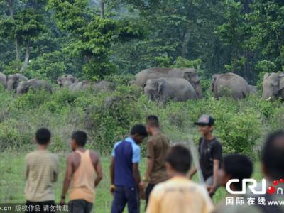 印度“人象大战”:村民扔鞭炮驱赶野生大象