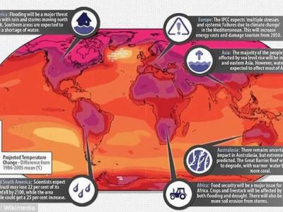 这张地图详细预测了不同大陆可能遭受的气候变化影响,政府间气候变化专门委员会(...