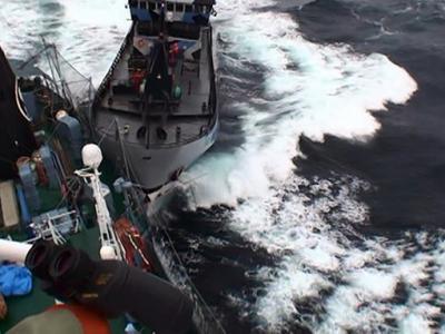 日本捕鲸船联合攻击性冲撞国际反捕鲸船