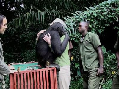 被救黑猩猩紧紧拥抱珍•古道尔