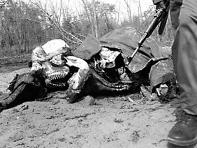 在津巴布韦发现的大象尸骸。偷猎者为了象牙而用氰化物毒死了这些大象。 (神秘的...