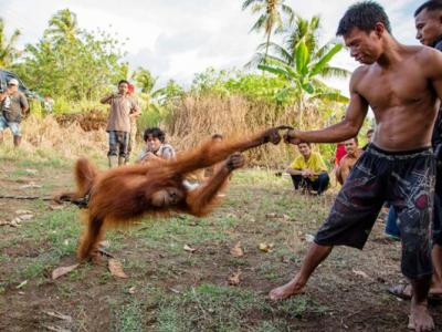 印度尼西亚婆罗洲一只母猩猩外出觅食时被村民抓住惨遭虐待 印度尼西亚婆罗洲一...