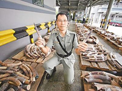 香港截获4年来最大宗象牙走私 据香港《文汇报》报道,象牙走私集团为逃避截查一...