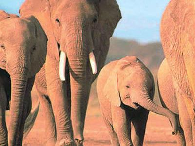 行走在非洲沙漠上的象群 据人民日报海外版:国际上“大象、犀牛、老虎减少由中国...