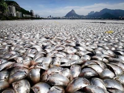 巴西罗德里戈•德弗雷塔斯湖惊现大量死鱼 里约热内卢罗德里戈•德弗...