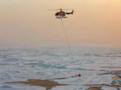直升机EM-鸟测量海冰厚度 随着去年北极海冰衰减到有记录以来的最低水平,研究人...