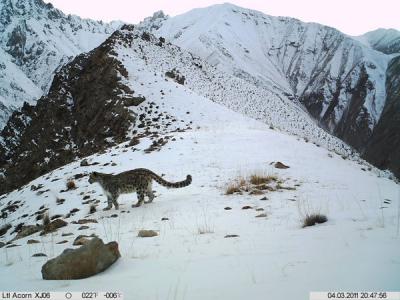 雪豹(拍摄自新疆塔什库尔干自然保护区) 与会专家正在与参会人员分享雪豹保护...
