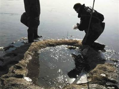 天津北大港湿地深处,警方对“毒池”液体取样 昨天,天津公安大港分局民警前往天...