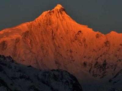 云南梅里雪山的“日照金山”奇观 黄金周长假进入尾声,作为旅游大省的云南,依然...